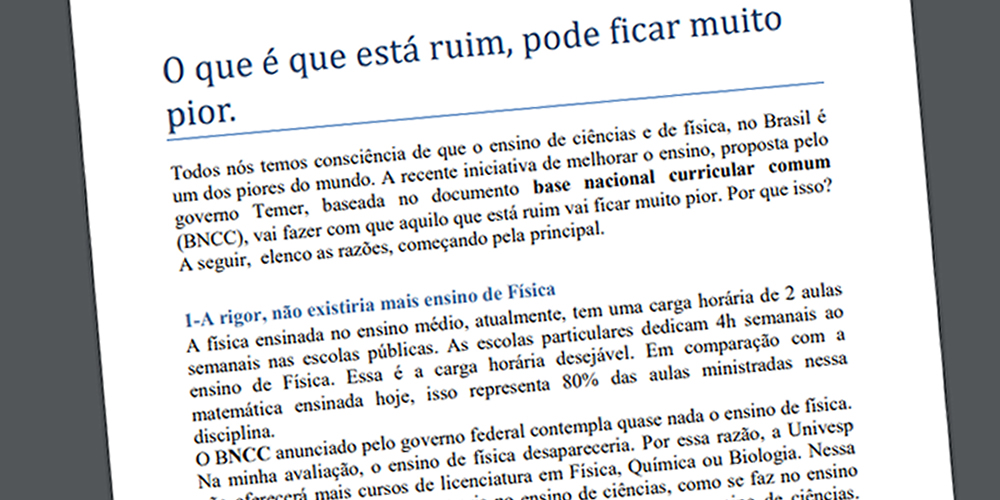 O Conselho da Sociedade Brasileira de Física aprovou na última terça-feira (24) o texto de uma carta a ser enviada ao Conselho Nacional de Educação