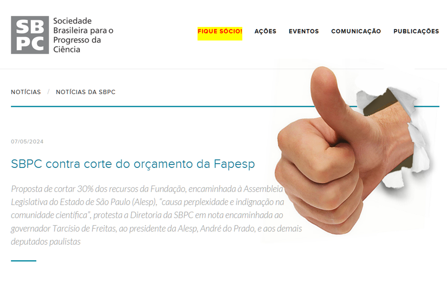 A Sociedade Brasileira de Física (SBF) subscreve a carta enviada pela Sociedade Brasileira para o Progresso da Ciência (SBPC) ao governador do Estado de São