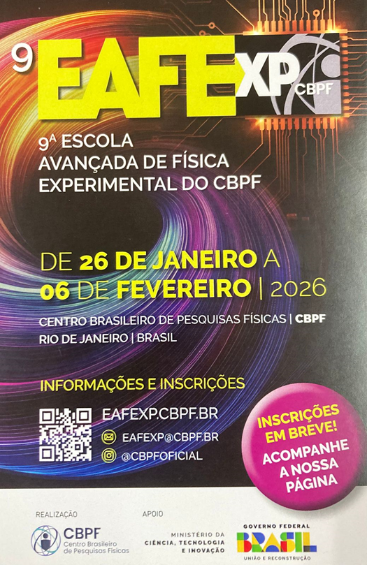 Na próxima segunda-feira dia 6 de outubro  as inscrições estarão abertas,  para a 9ª EAFEXP – Escola Avançada de Física Experimental do CBPF,  que será realizada em janeiro de 2026, no Rio de Janeiro.