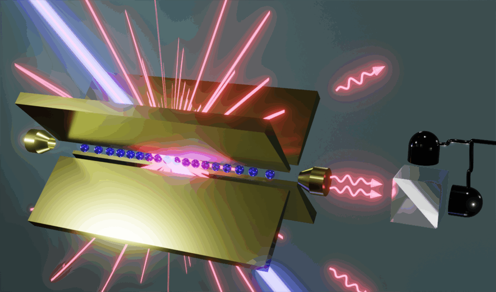 Os íons foram mantidos a distâncias de alguns micrômetros uns dos outros, o suficiente para garantir que cada um emitisse de forma independente, mas ainda assim próximos o bastante para que a interferência entre eles acontecesse. A distância entre os íons foi ajustada para mudar o padrão de interferência da intensidade, variando de destrutiva (quando a luz se cancela) a construtiva (quando ela se soma).