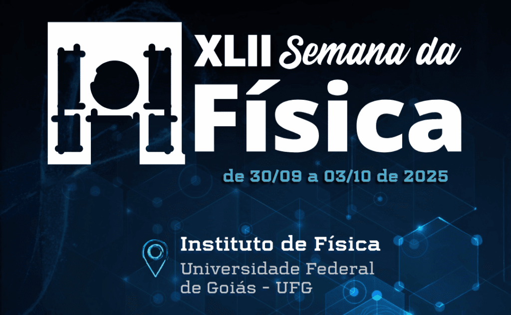O Instituto de Física da Universidade Federal de Goiás (IF-UFG) convida a comunidade acadêmica a participar da XLII Semana da Física, que será realizada de 30 de setembro a 03 de outubro de 2025, em conjunto com o VIII Workshop da Pós-Graduação em Física.