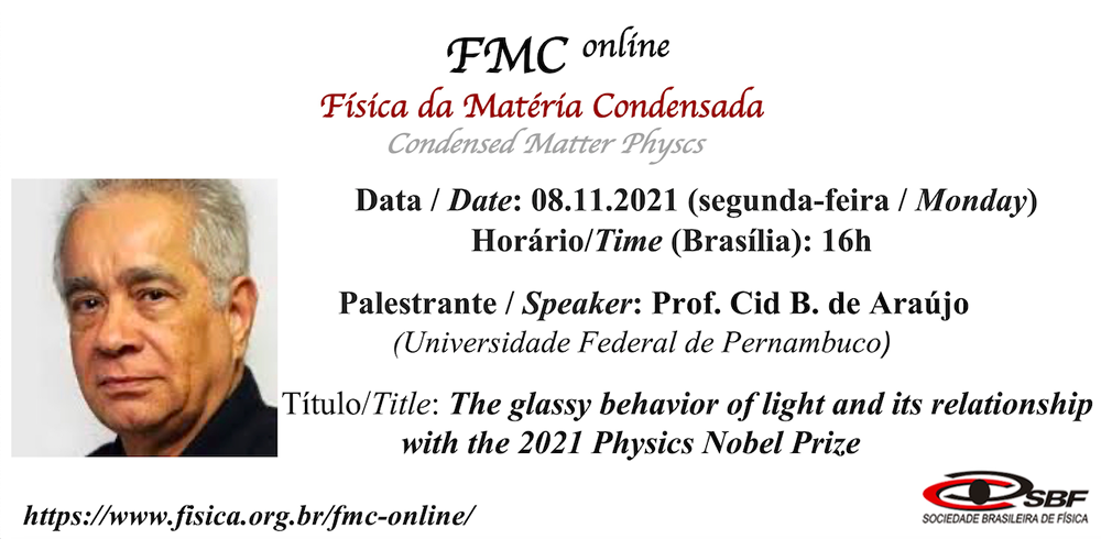 Gostaríamos de convidá-los para o próximo evento da série de webinários de Física da Matéria Condensada & Materiais da SBF: “The glassy behavior of light