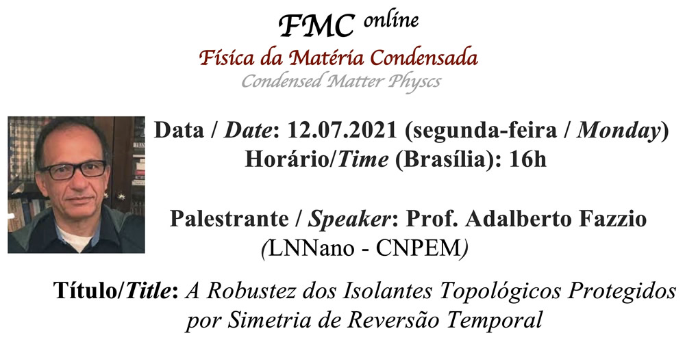 Gostaríamos de convidá-los para o próximo evento da série quinzenal de webinários de Física da Matéria Condensada & Materiais da SBF: “A Robustez dos Isolantes