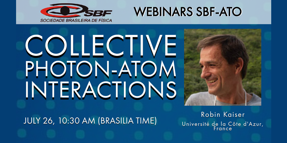 O próximo evento da série de seminários online de Física Atômica e Molecular (ATO) da SBF será: Collective Photon-Atom Interactions Robin Kaiser (CNRS/Université de la