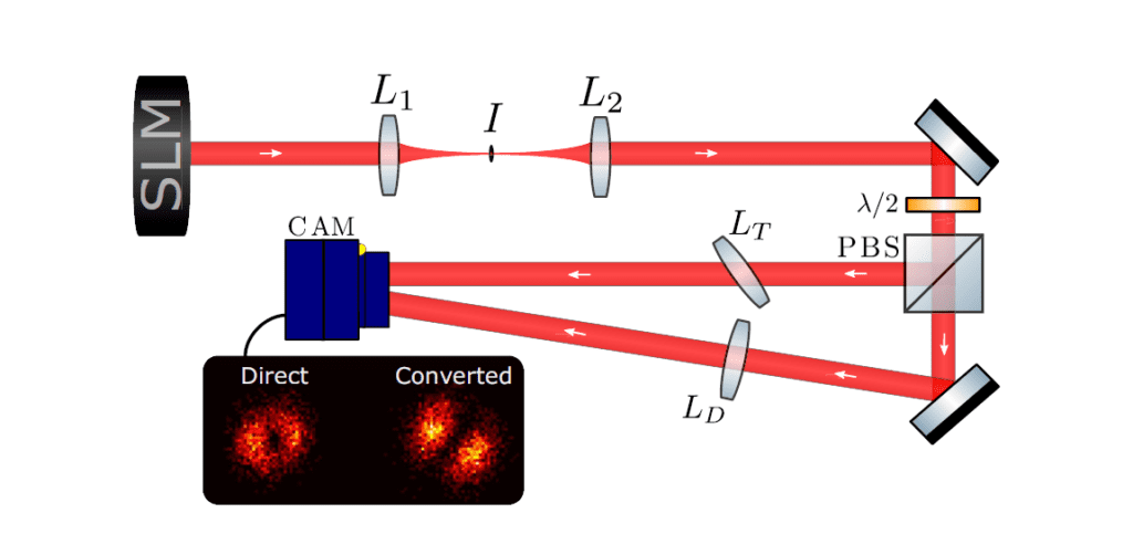 Entre esses graus de liberdade, a luz oferece uma variedade de possibilidades. Além de propriedades como cor e polarização, as estruturas espaciais da luz, isto é, a forma do feixe no plano transversal à propagação, têm ganhado protagonismo. “Quando você liga um laser, normalmente você vê um feixe redondo. Isso é um modo específico de propagação, mas você pode gerar modos mais complexos”, afirma Khoury. “Inclusive, você pode usar essa propriedade como um grau de liberdade para codificar a informação.”